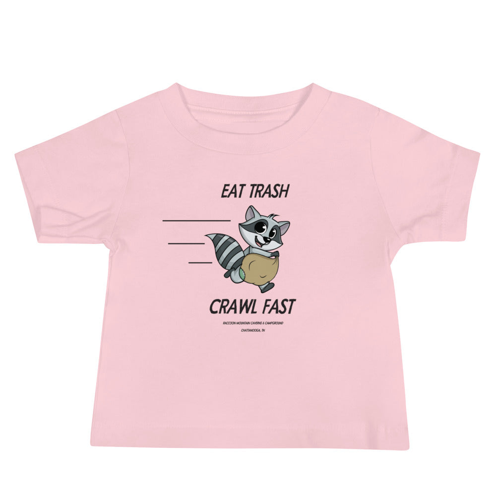 Eat Trash Crawl Fast Baby Tee Raccoon Mountain Caverns & Campground