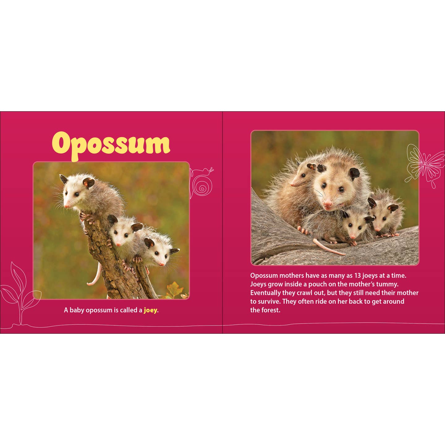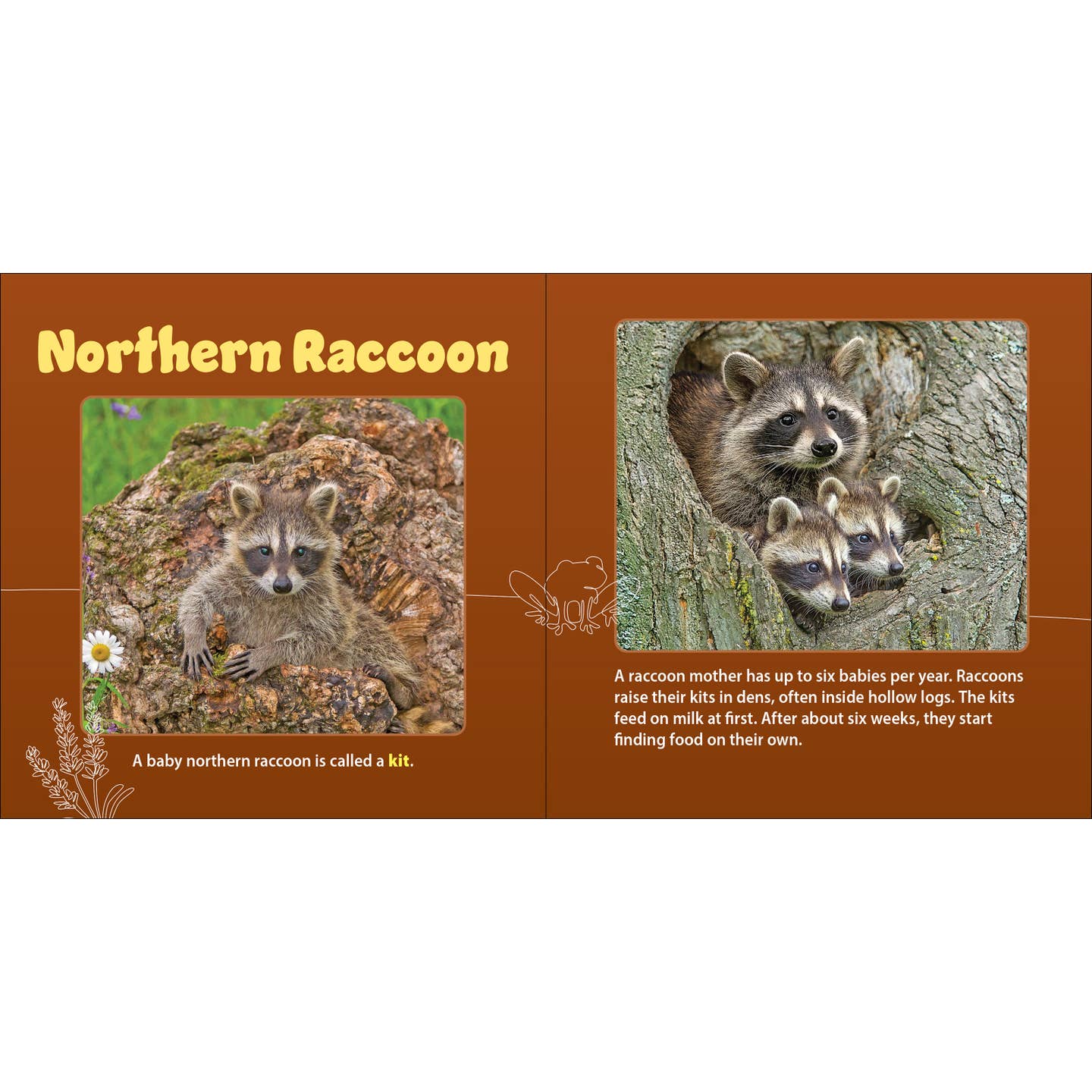 Introduce children to 10 common animals—and their babies—that live in the forest with this wildlife-themed board book.