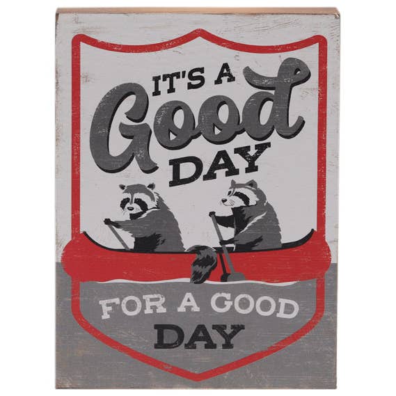 Good Day for a Good Day Raccoon Wooden Wall Art