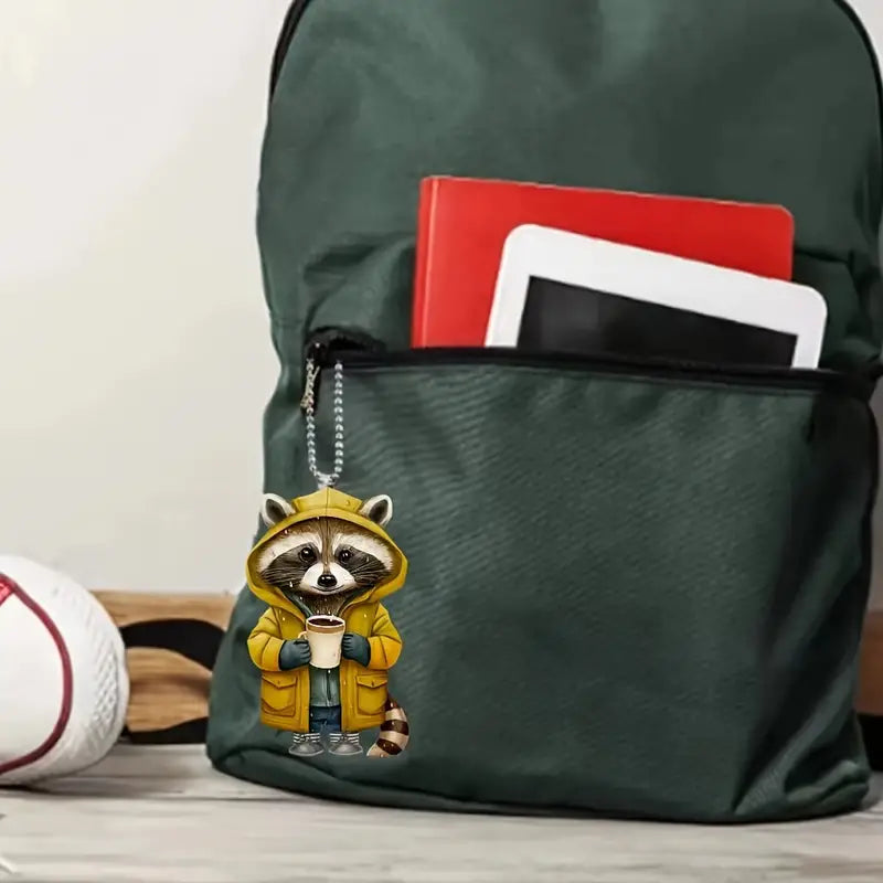 Raccoon in Rain Jacket Holding Coffee Ornament